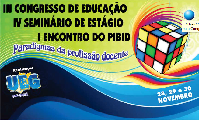 2013As inúmeras discussões e reflexões coletivas na Unidade Universitária da UEG de Iporá culminaram na proposta de que o Congresso de Educação, em sua terceira edição, abarcasse também o Seminário de Estágio e o Encontro do Pibid. Nesse sentido, o evento proposto acontecerá no período de 28 a 30 de novembro de 2013, intitulado III Congresso de Educação, IV Seminário de Estágio e I Encontro do Pibid, sob a temática “Paradigmas da Profissão Docente”. O evento se propõe a ser espaço de estudos, reflexões, intercâmbios, de construção de novas aprendizagens do fazer pedagógico e, consequentemente, da profissão docente. Professores universitários, acadêmicos, professores da educação básica, bem como pessoas da comunidade iporaense e regional interessadas em ampliar seus conhecimentos relativos à formação docente constituirão a clientela desse evento que contará em sua programação com Palestras, Mesa de Debate, Relato de Experiências, Comunicações Coordenadas, Grupos de Trabalhos (GTs), Exposição de Posters e Apresentações Artísticas e Culturais. Para a construção da programação do evento optou-se pela busca de aprendizagens advindas dos ensinamentos de pesquisadores de renome nacional, dos projetos de ensino, pesquisa e extensão, bem como dos projetos de estágio supervisionado e do programa institucional de bolsa de iniciação à docência-Pibid, desenvolvidos na instituição. Ângela Maria L. Ferreira Moura