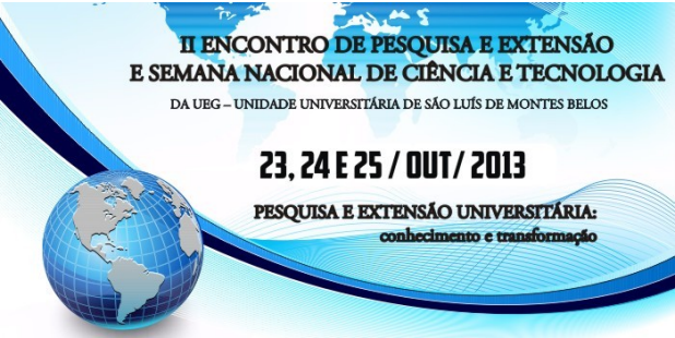 Diante deste cenário serão realizados o III Encontro de Pesquisa e Extensão e Semana Nacional de Ciência e Tecnologia, nos dias 21, 22 e 23 de outubro do ano de 2014. Objetiva-se com esse evento incentivar a participação de docentes e discentes da Unidade Universitária (UnU) de São Luís de Montes Belos na produção e divulgação de trabalhos científicos, promover um breve panorama da pesquisa e extensão dos cursos de Letras, Pedagogia, Tecnologia em Laticínios e Zootecnia da UnU e realizar oficinas de desenvolvimento e inclusão social para a comunidade montebelense.