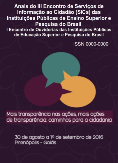 v. 1 (2016): Anais do III Encontro Serv.Inf.Cid.Inst. Publ.Ensino Super. Pesqui. Bras., I Encontro Ouvidorias inst. Publ. Educ.Super. Pesqui. Brasil - Mais transparência nas ações, mais ações de transparência: caminhos para a cidadania