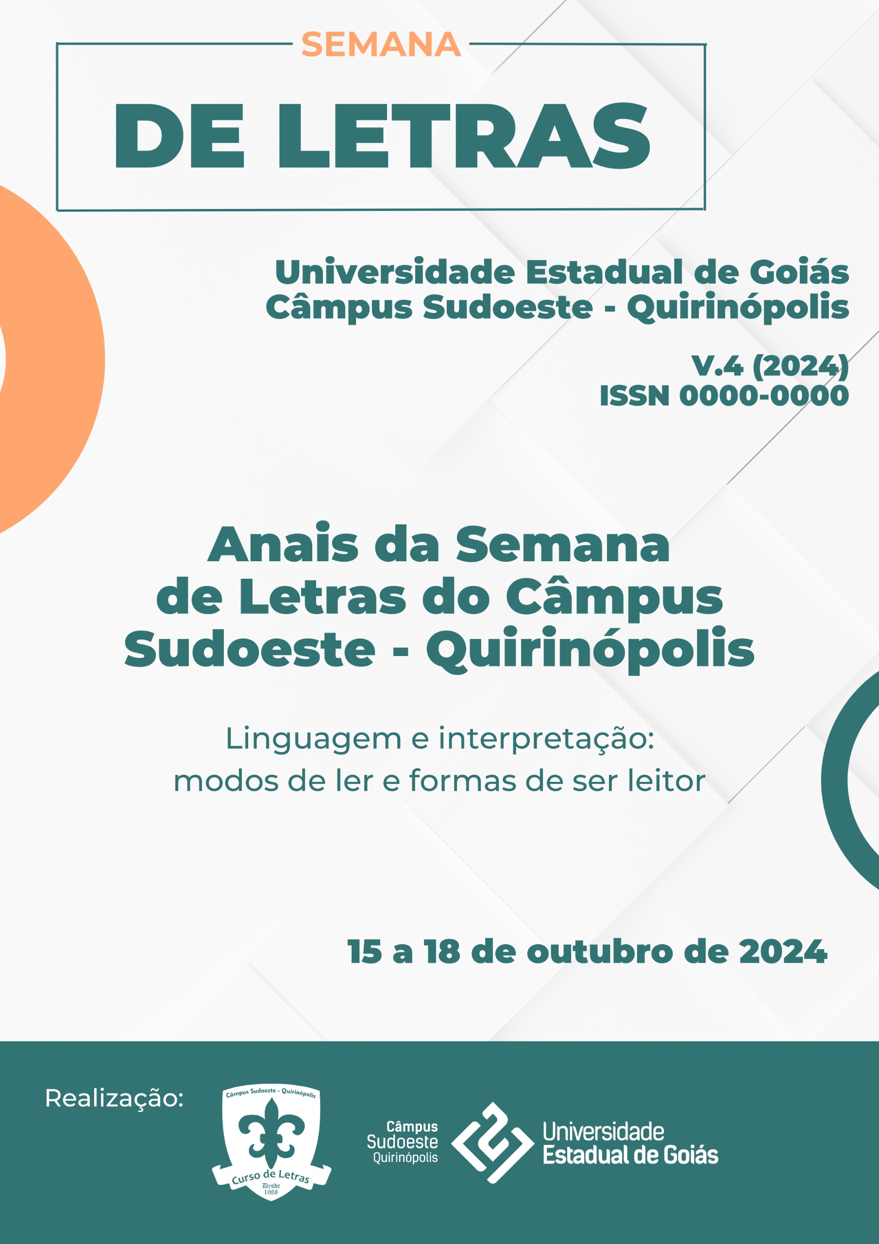v. 5 n. 1 (2025)A Semana de Letras do Câmpus Sudoeste da UEG realizou em 2025 a sua vigésima quinta edição. Nesse ano discutiu-se a temática “Linguagens, diversidade e direitos: práticas de leitura e sujeitos em significação”, com o propósito de elucidar a relação entre linguagem e sociedade, e as diversas formas de materialização dos sentidos e de ser sujeito pela linguagem. Nessa direção, sujeitos e sentidos se constituem a partir de formas materiais, e a língua se mostra como uma das principais delas, manifestando história, práticas sociais e práticas ideológicas . Nesta edição foram realizadas 14 comunicações orais, divididas em duas sessões de apresentação. Os resumos destes trabalhos encontram-se publicados no Caderno de Resumos destes anais.