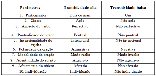 HOPPER, Paul; THOMPSON, Sandra A. Transitivity in grammar and discourse. Language, v. 56, p. 251-299, 1980.